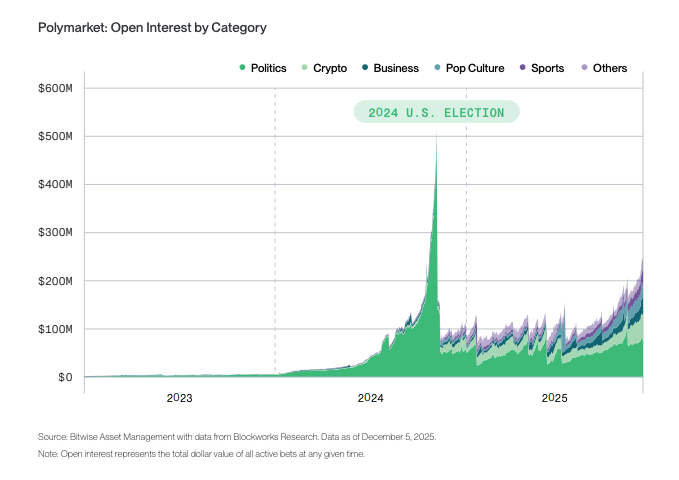 Прогноз 5: Открытый интерес на Polymarket установит новый рекорд, превзойдя уровень выборов 2024 года