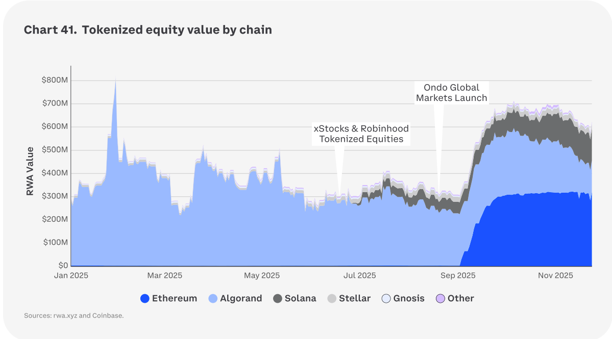 Хотя токенизированные акции получили непропорциональное внимание в 2025 году, основная масса токенизированной стоимости находится в других классах активов.