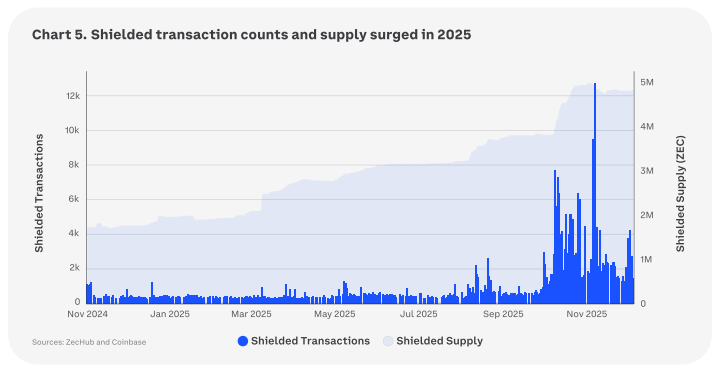 Как следствие, протоколы делают акцент на создании ценности для держателей токенов — обратном выкупе токенов, распределении комиссий и других механизмах, связывающих токеномику с реальным использованием, — что стало возможным благодаря упомянутой выше регуляторной ясности. Между тем институциональное принятие повысило чувствительность к вопросам контроля и надзора, стимулируя развитие платёжных архитектур, ориентированных на приватность (доказательства с нулевым разглашением, полностью гомоморфное шифрование), и заметный рост приватных (экранированных) транзакций.