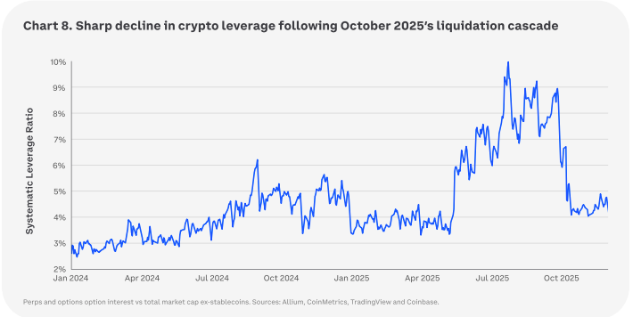 График 8. Резкое снижение крипто-левериджа после каскада ликвидаций в октябре 2025