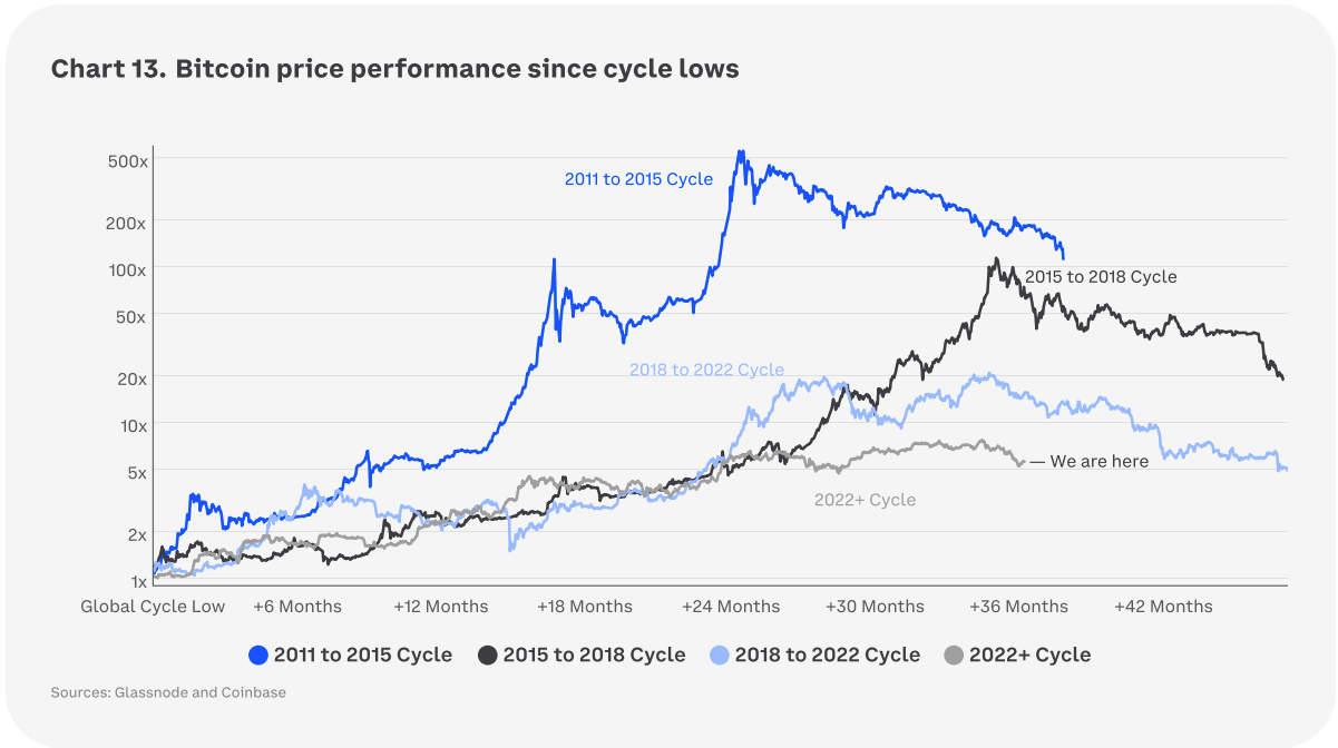Ценовая динамика биткоина в 2025 году была неоднозначной для нарратива токена, поскольку такие классы активов, как американские акции и золото, превзошли криптовалюты на риск-скорректированной основе, приглашая к утверждению, что биткоин может быть близок к классическому циклическому пику. Понятие четырёхлетнего цикла долгое время было краеугольным камнем тезиса биткоин-рынка, в значительной степени под влиянием программных сокращений вознаграждения майнеров за блок (известных как халвинги, которые происходят каждые 210 тысяч блоков).