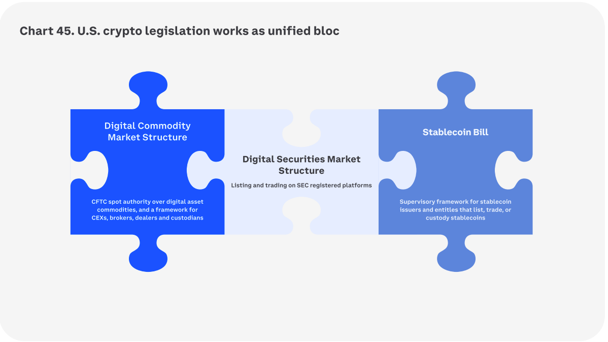 Глядя за пределы США, мы думаем, что этот внутренний политический сдвиг может послужить ориентиром для международных регуляторов. Такая трансграничная диффузия может способствовать большей гармонизации и предсказуемости, создавая более ясные пути для расширения продуктов и институционального принятия при сужении рисков фрагментации для глобальных платформ и клиентов.
