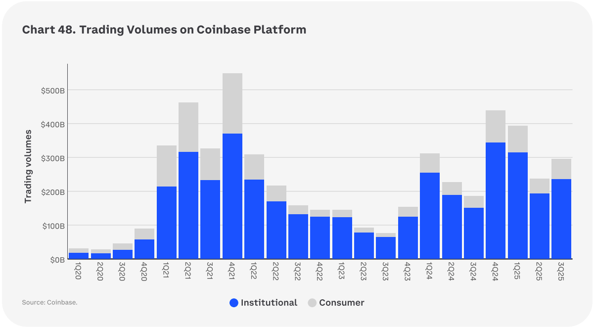 Отдельно мы консолидировали институциональные воркфлоу на Coinbase Prime, запустив новый Earn Center для управления Prime Rewards/Rebates (USDC), PrimePlus и Agency Lending в едином месте. Мы также представили программный API для стейкинга Solana для управления стейкинговыми операциями в масштабе, включили мгновенные переводы между аккаунтами Prime для эффективности капитала и внедрили улучшения UI, такие как редактируемые ордера для более быстрой гигиены исполнения. Каждый из этих шагов был разработан для устранения операционного трения, улучшения мобильности ликвидности и предоставления институтам лучшего контроля над их сквозным жизненным циклом на нашей платформе.